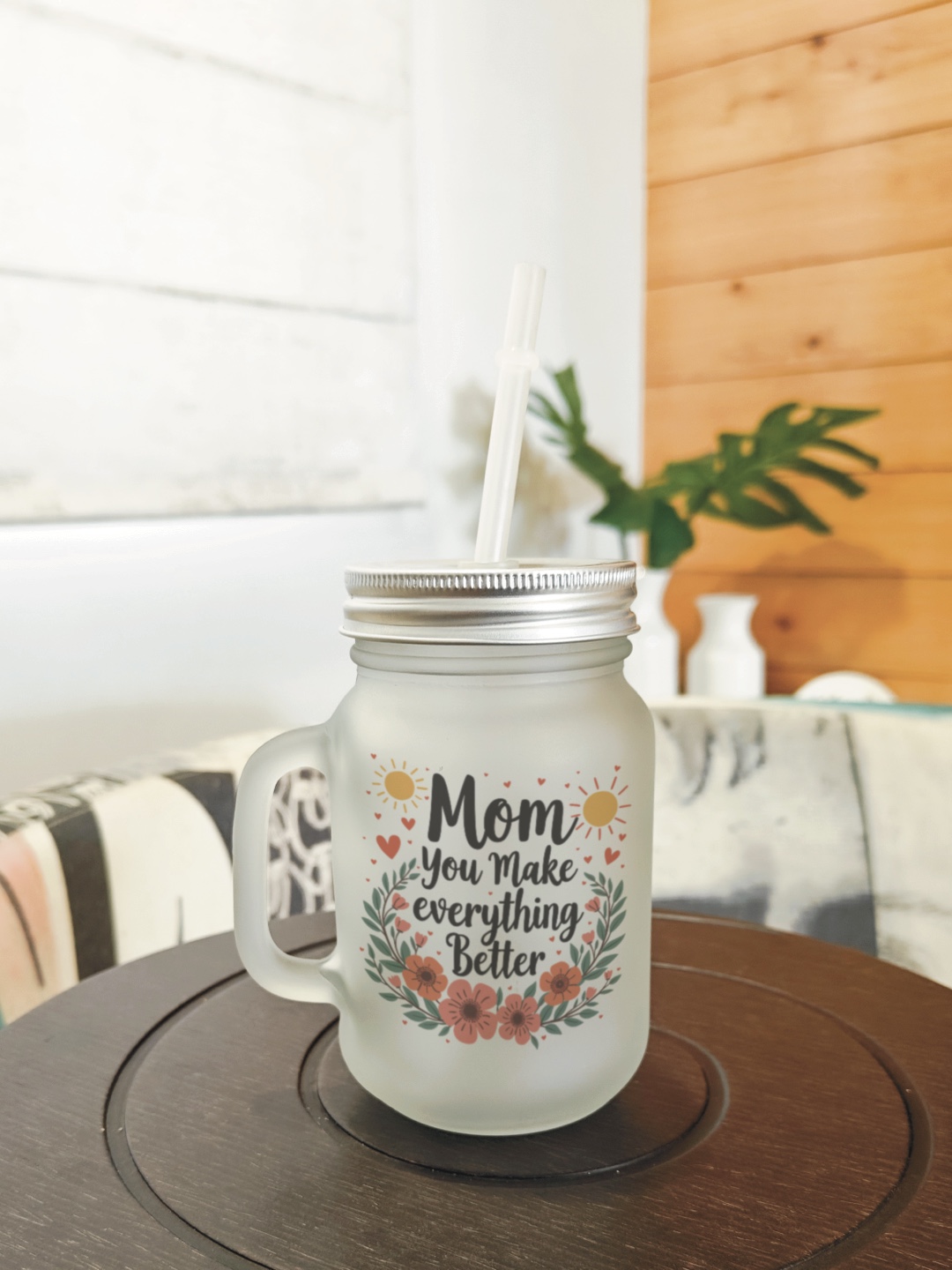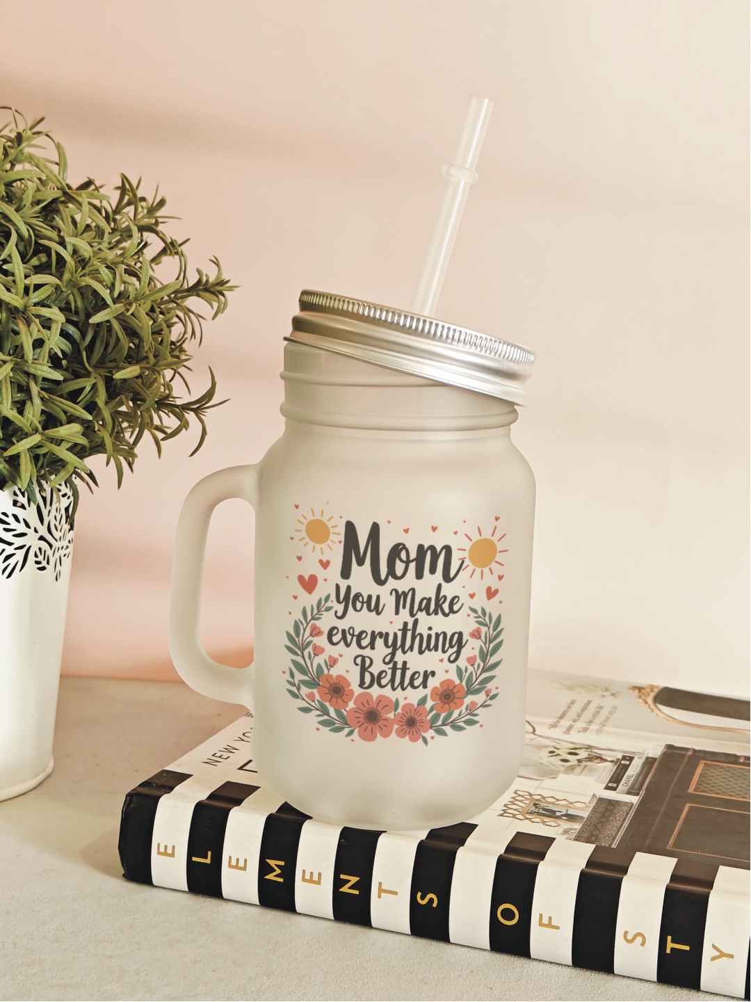 Celebrate Mother’s Day with this lovely printed frosted mason jar sipper -Sweetest Mom, featuring a special Mother’s Day print! Complete with a lid and straw, it’s the perfect ready-to-gift item. Make it even more special with personalisation options. This charming jar features a durable, high-quality print and comes with a lid and reusable plastic straw.
